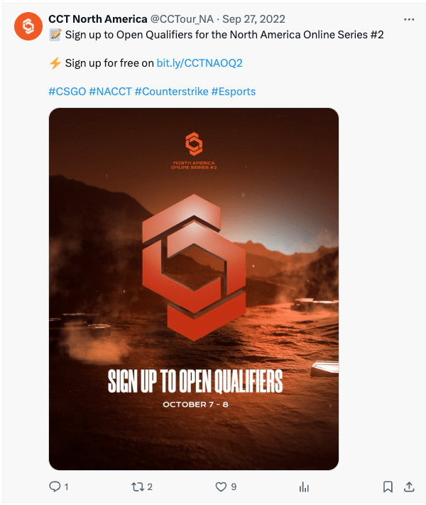 We launched the Twitter account for the CCT North America series and created over 80 tweets to promote the Counter-Strike North America tournament.